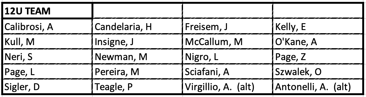 12U Team Registration Click here to join team database